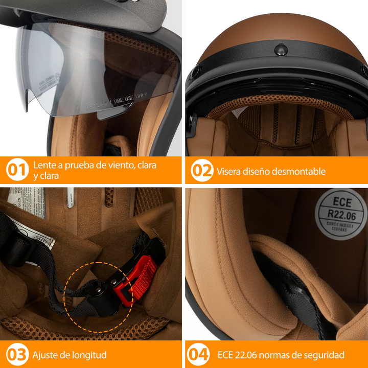 casco moto Marrón helado ,casco abierto | HSWHEEL