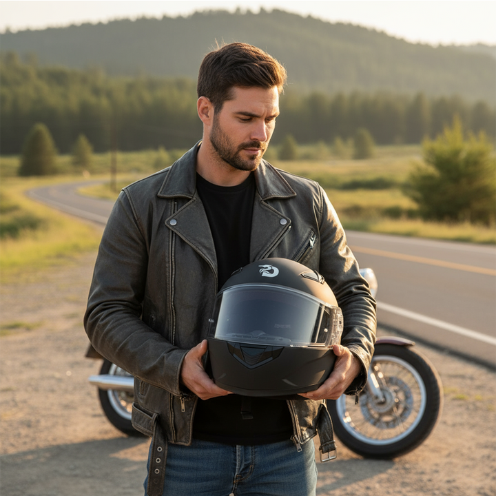 Casco Moto Modular ECE Homologado, Negro Mate - Casco Integral con Visor Solar | Dawnrise Homologado ECE