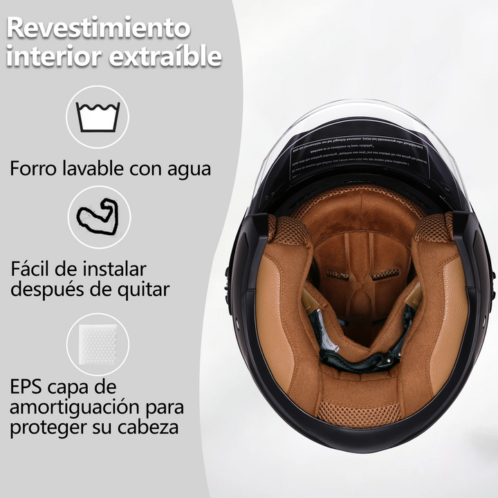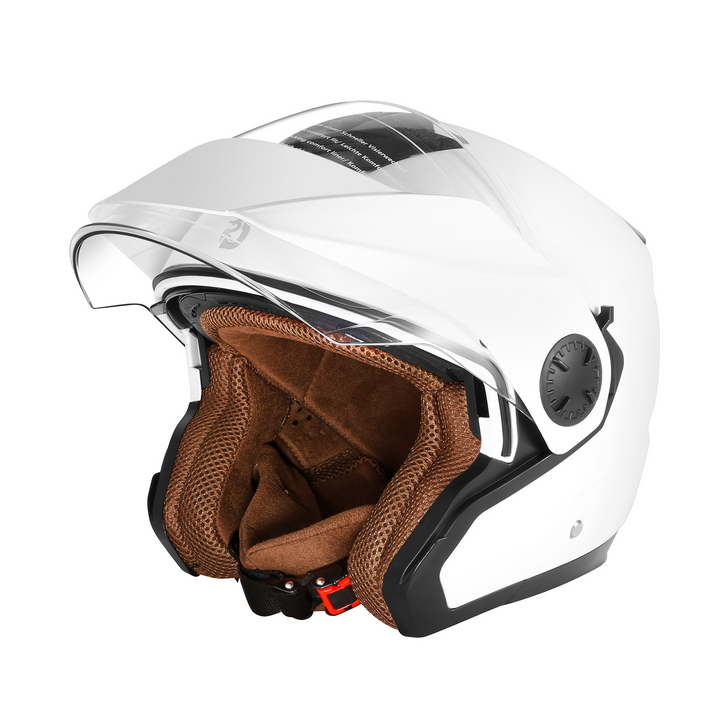 DAWNRISE Cascos Moto Jet para, diseñado para motociclistas que valoran tanto el estilo como la funcionalidad. Este casco abierto presenta un elegante acabado de colores sólidos  que complementa cualquier motocicleta o scooter. Equipado con doble visera para mayor versatilidad en diferentes condiciones de conducción, ofrece una experiencia de uso superior. El interior está forrado con un acolchado suave en tono marrón que proporciona comodidad durante trayectos largos. Su diseño versátil lo hace ideal tanto para hombres como para mujeres. El sistema de ventilación integrado ayuda a mantener una temperatura óptima, mientras que su construcción ligera reduce la fatiga durante el uso prolongado. El cierre seguro y los acabados de calidad demuestran la atención al detalle en su fabricación. Este casco jet es perfecto para uso urbano y viajes cortos, combinando practicidad con un diseño moderno.