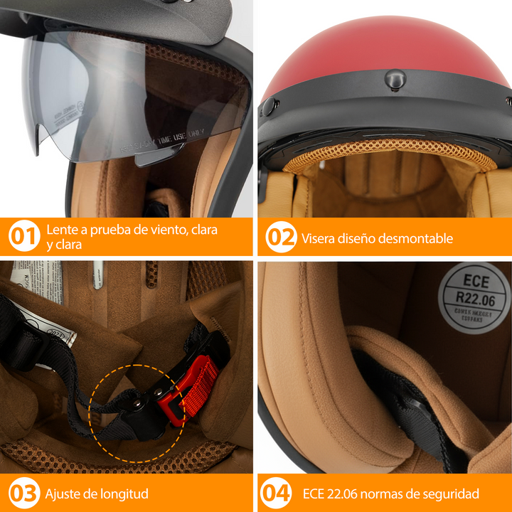 casco moto Rojo rubí ,casco abierto | HSWHEEL
