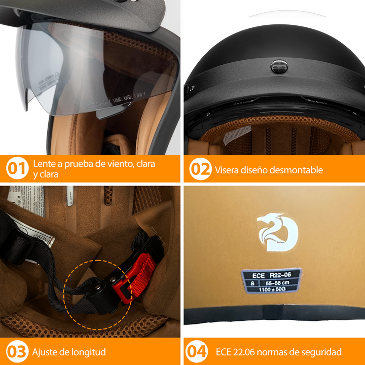 Casco Moto Jet Casco de Moto Vintage Casco Open Face Scooter Ciclomotore con Doble Visera Homologado ECE22.06