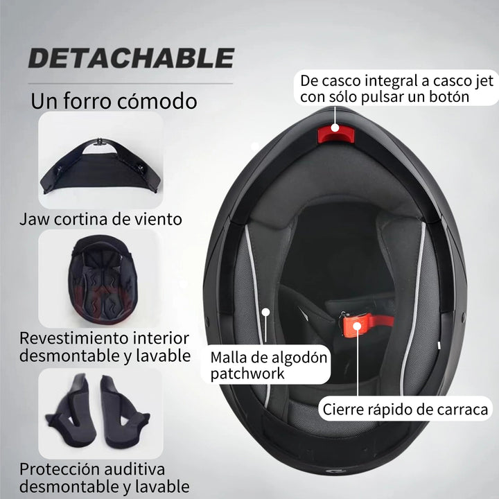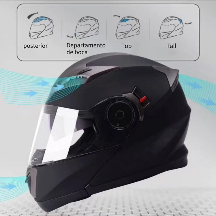 通风:Nuestra Casco Moto Modular Formado 具有可调节的前空气流通性,具有优越的性能和良好的通风性能,并且具有良好的空气流通性。保证空气流通,享受舒适的体验。